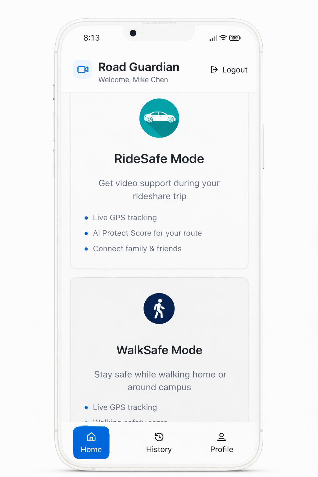 Road Guardian is a real-time, AI-powered safety platform designed to protect people during the moments that matter most — while they’re in transit. By combining AI trip intelligence, live human support, and trusted-contact connectivity, Road Guardian provides reassurance, rapid escalation, and actionable safety insights across rideshare, on-foot travel, and emerging mobility use cases.